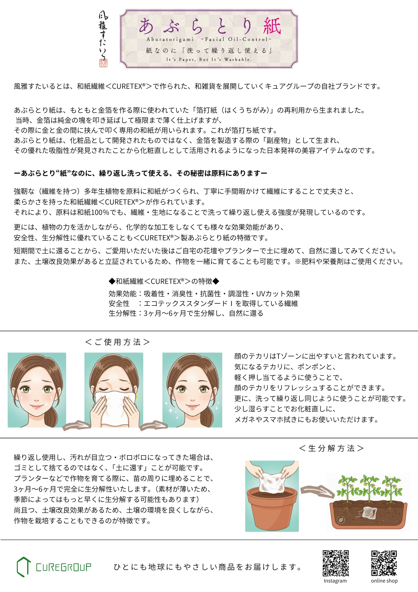 和紙繊維<CURETEX®>100%で作られた特別なあぶらとりハンカチのリニューアル版です。